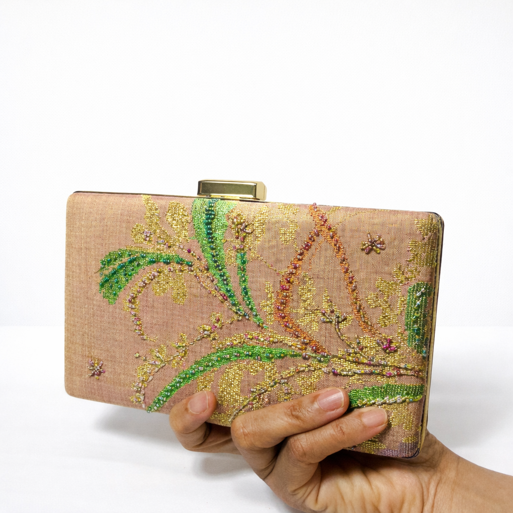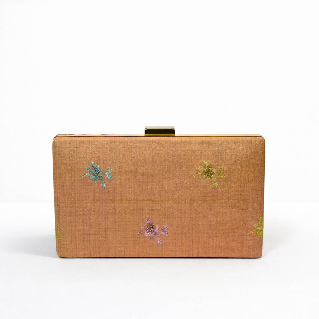 An elegant clamshell clutch using exclusive handwoven songket pieces by Bibah Songket. Heirloom songket pieces were used when making this clutch. This one-piece only clutch makes the ultimate handheld piece of heritage suitable for any occasion.