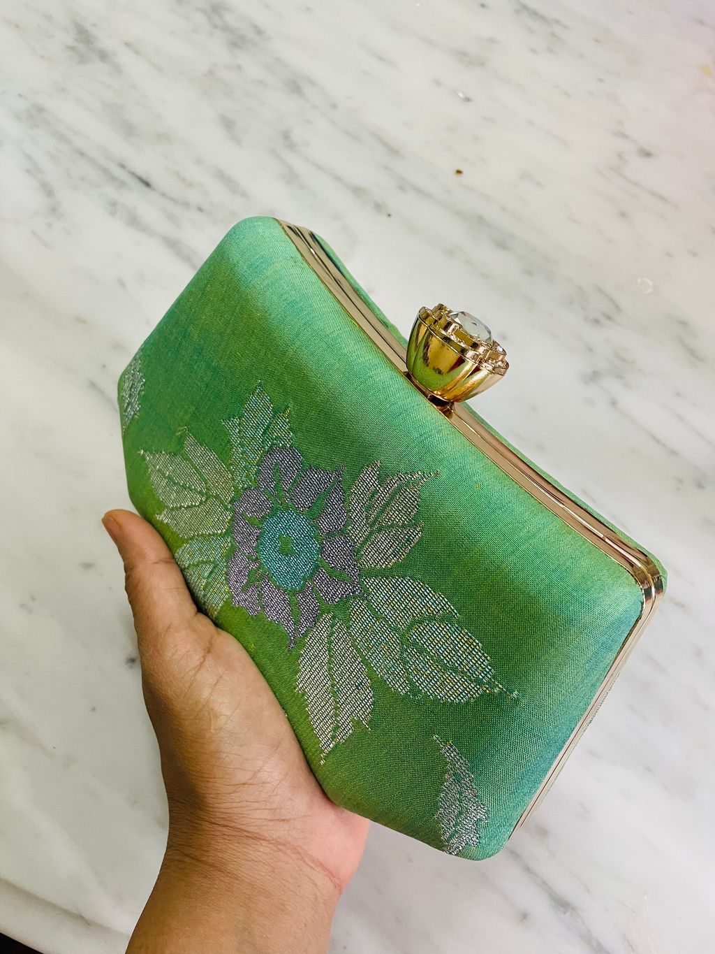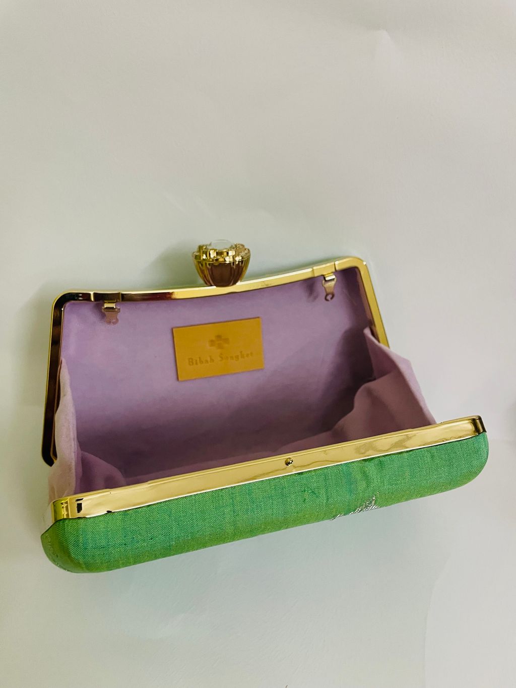 An elegant clamshell clutch using exclusive handwoven songket pieces by Bibah Songket. Heirloom songket pieces were used when making this clutch. This one-piece only clutch makes the ultimate handheld piece of heritage suitable for any occasion.