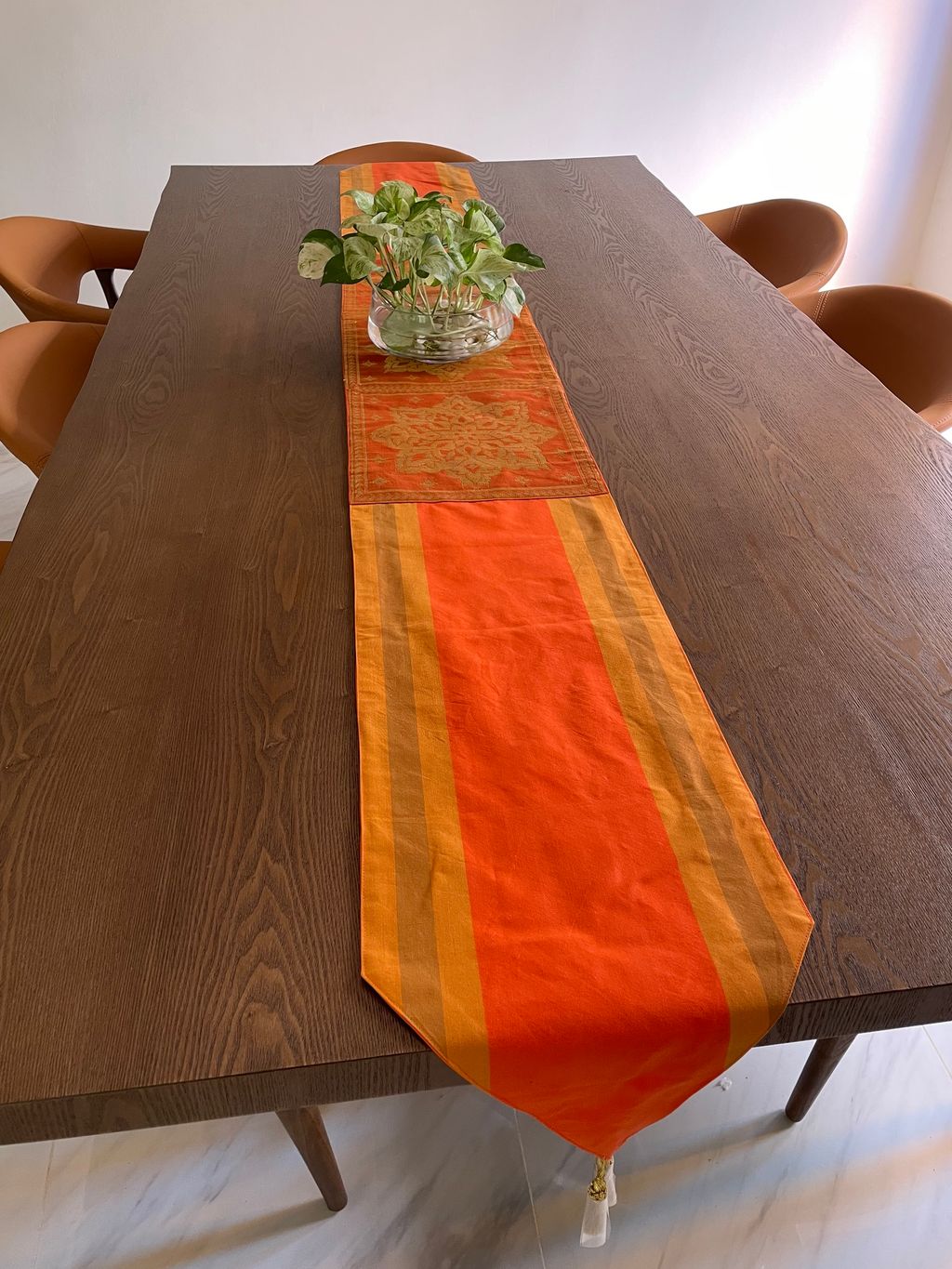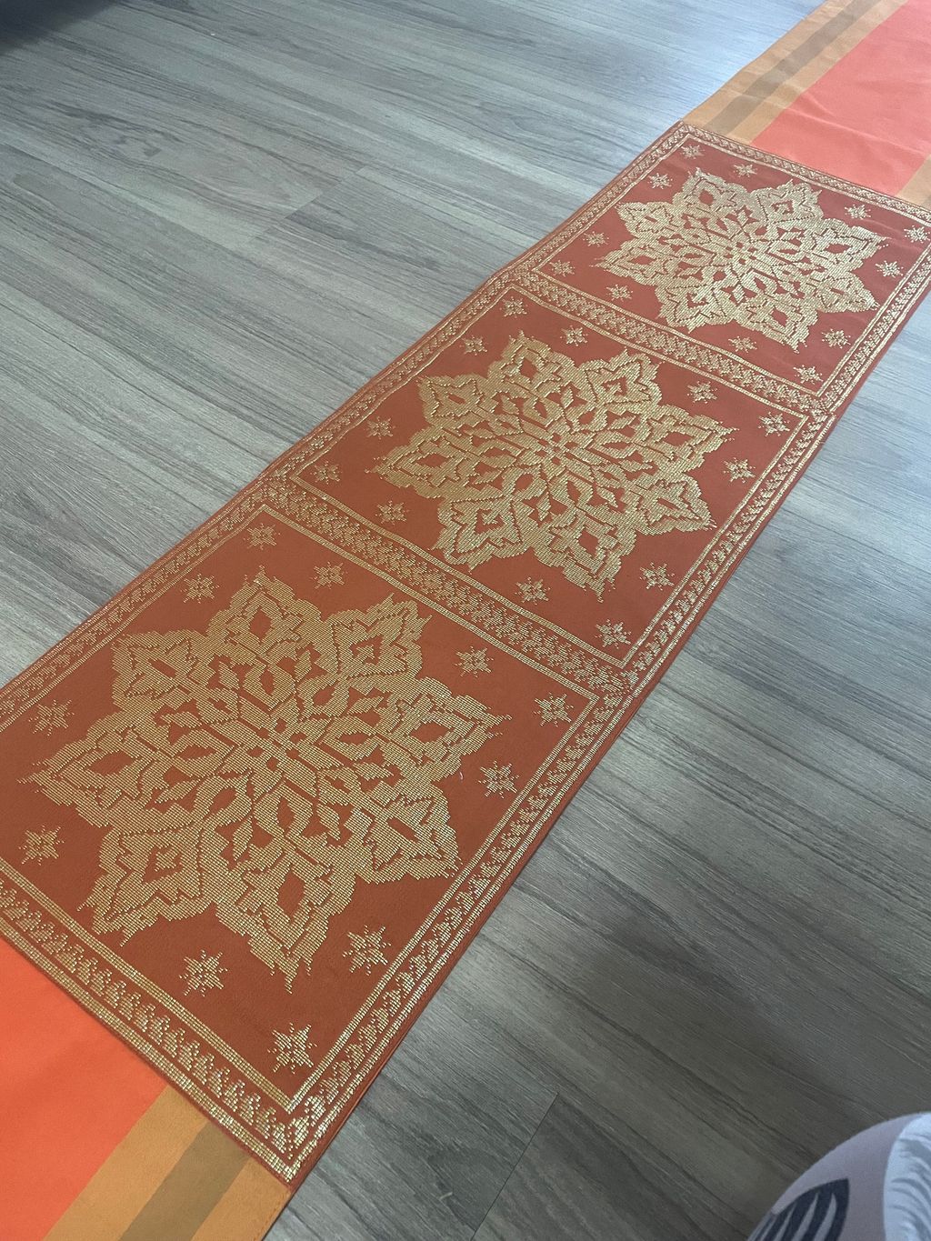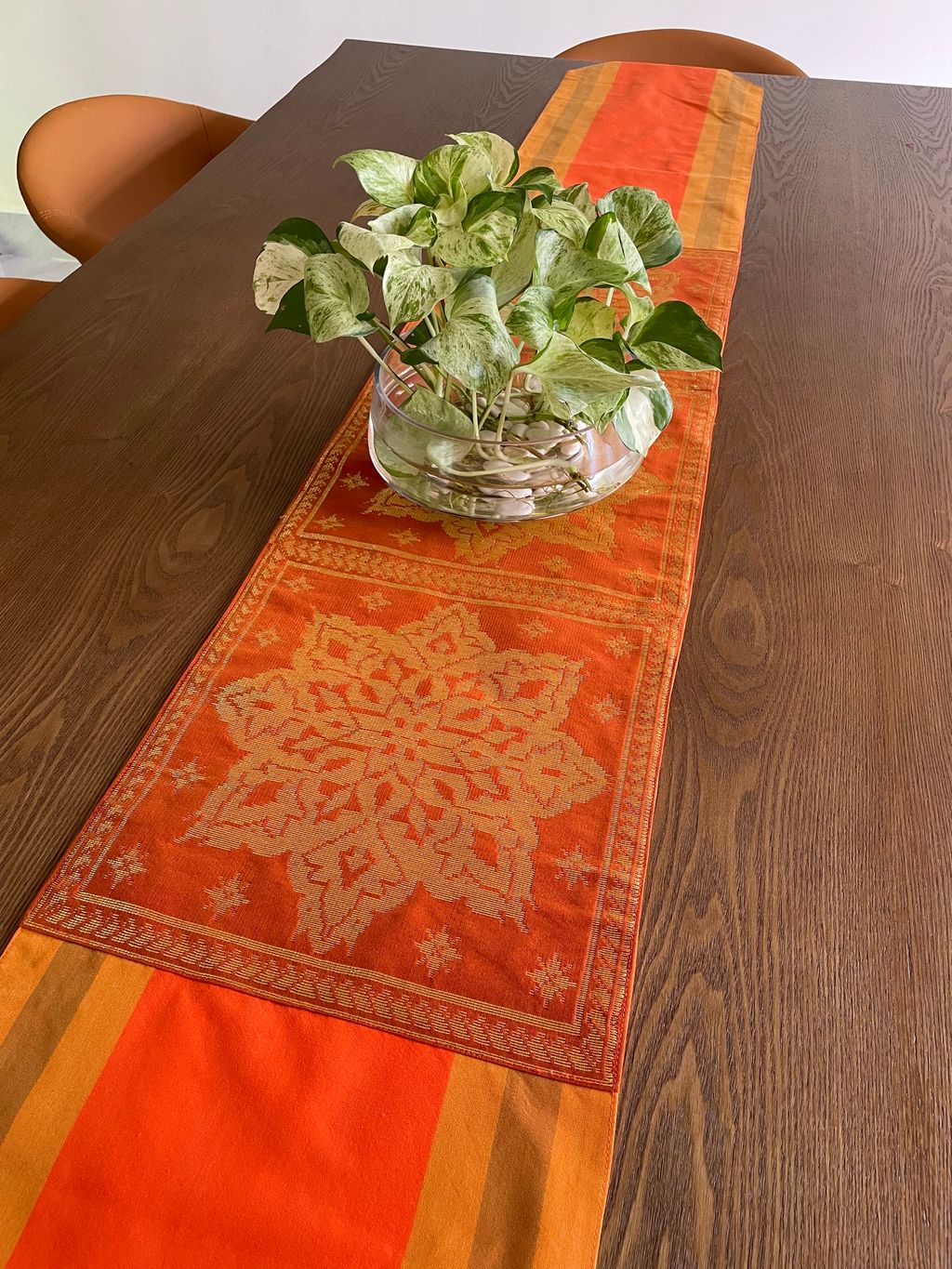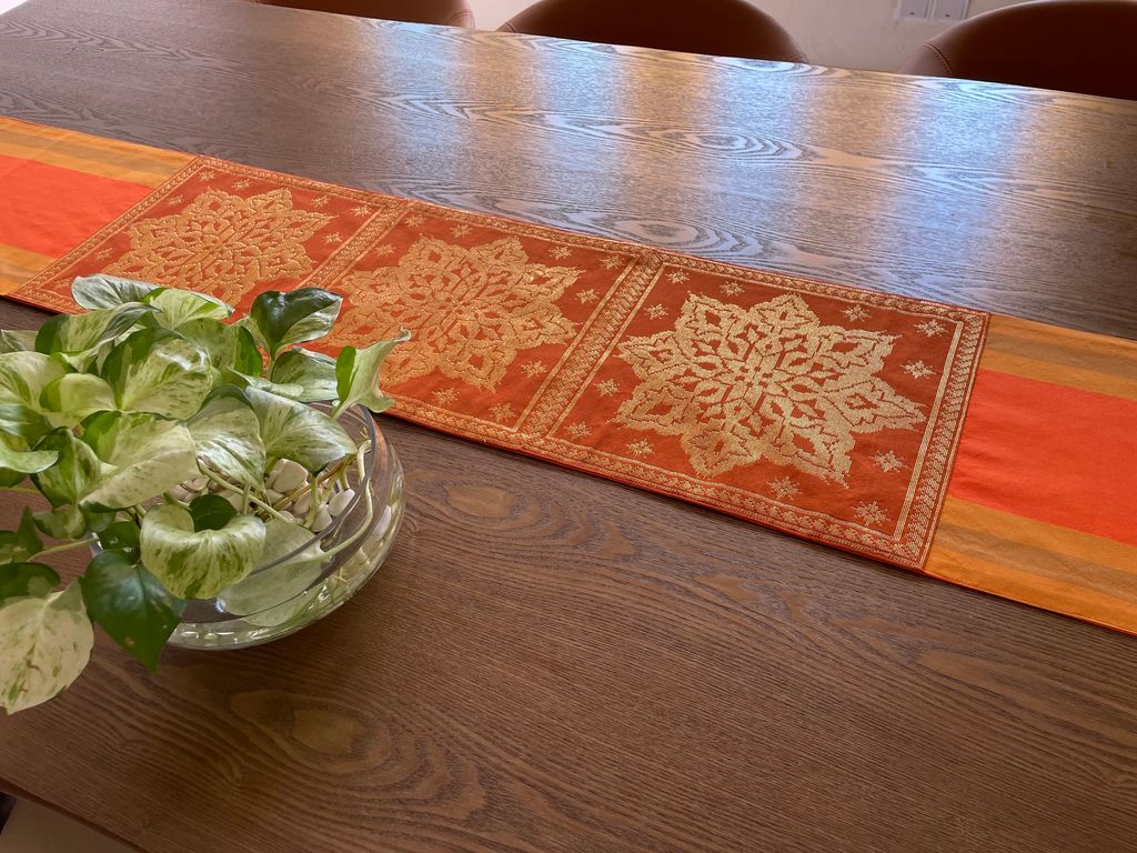 SONGKET RUNNER: ORANGE TENUN STRIPE BROWN 3 GOLD SONGKET